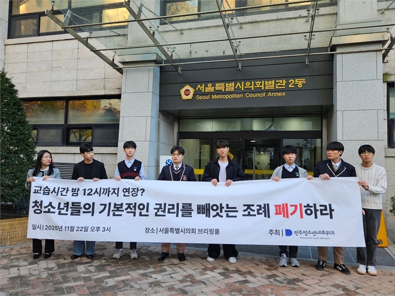 청소년네트워크는 서울시의회 교육위원회가 추진 중인 고등학생 학원의 심야 교습시간을 밤 10시에서 자정까지 연장하는 조례 개정안(국민의힘 정지웅 의원(서대문1) 대표발의) 철회를 촉구했다.